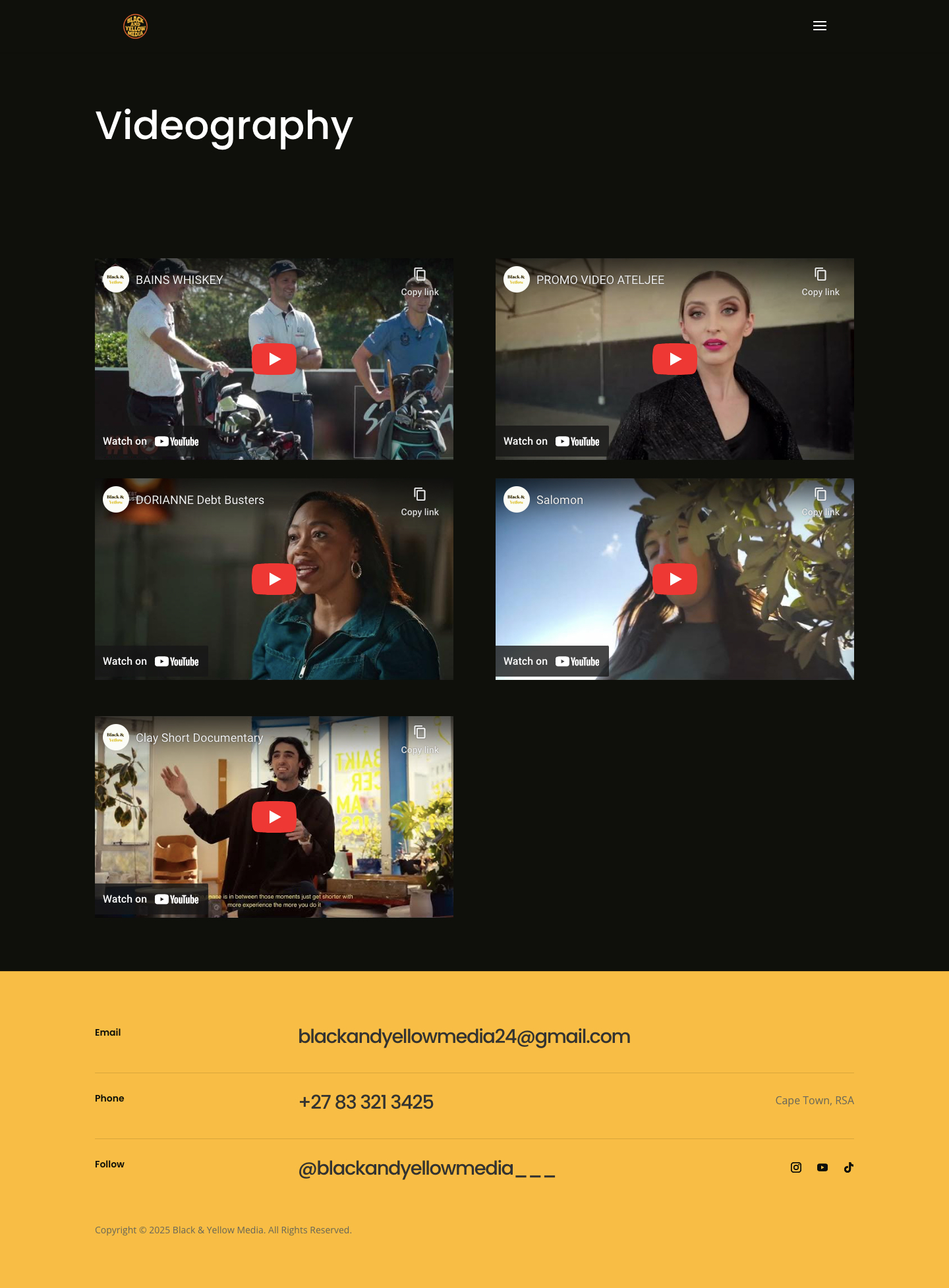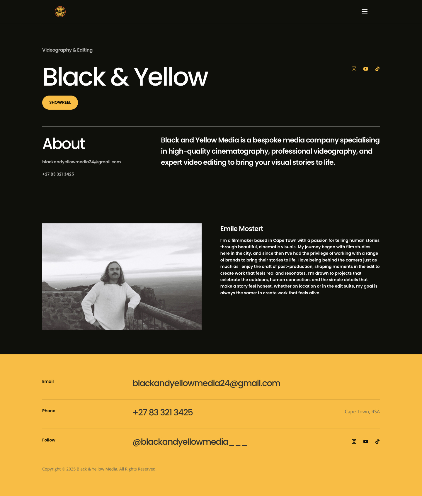 Black & Yellow Media, founded in Cape Town, began with a passion for authentic storytelling through film and photography, focusing on capturing outdoor adventures and the human moments that make stories meaningful. Over time, it evolved into a full-service media company, offering videography, cinematography, and professional editing to help brands, creators, and individuals share their narratives with impact. With a philosophy rooted in honesty, craft, and connection, the company strives to create visuals that are both cinematic and deeply relatable. By combining technical excellence with a love for real experiences, Black & Yellow Media continues to inspire audiences and elevate projects, leaving behind work that feels timeless, beautiful, and true.